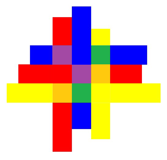 縦と横で交差した色を混ぜていくと、