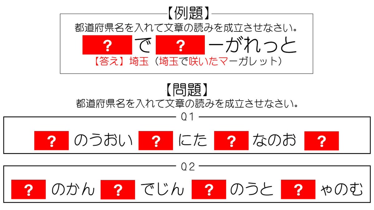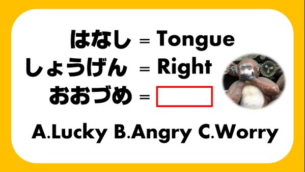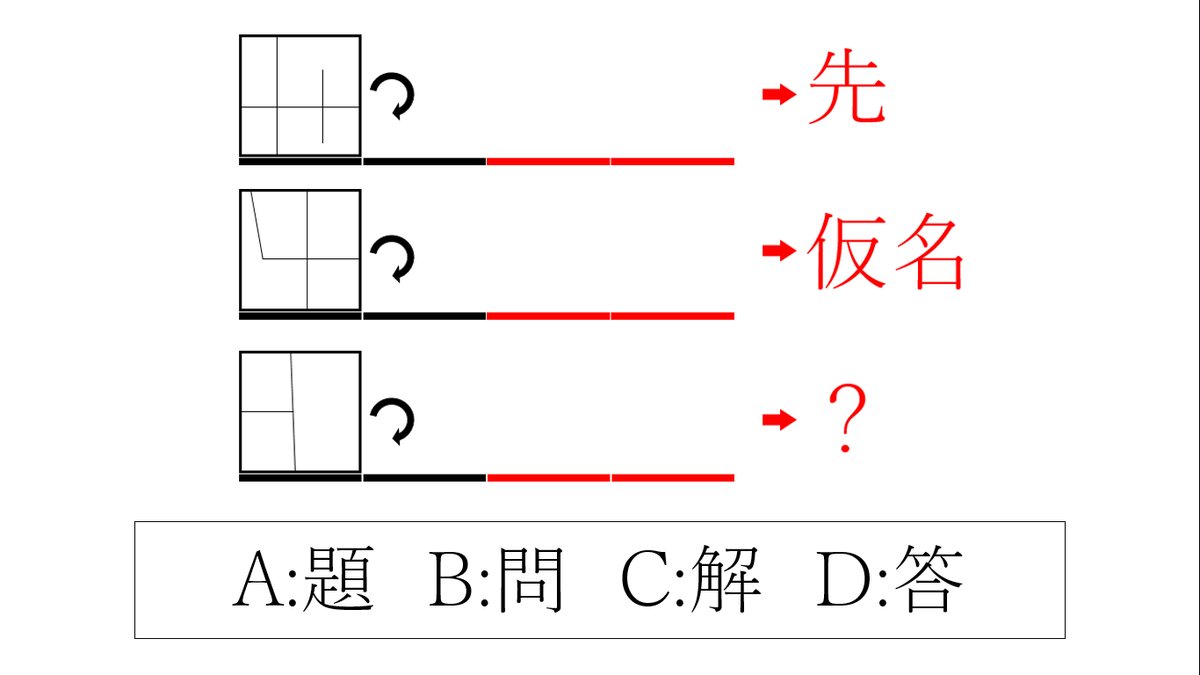 問題文と同じ色の四角形に書かれた文字を同じ順番で読むと