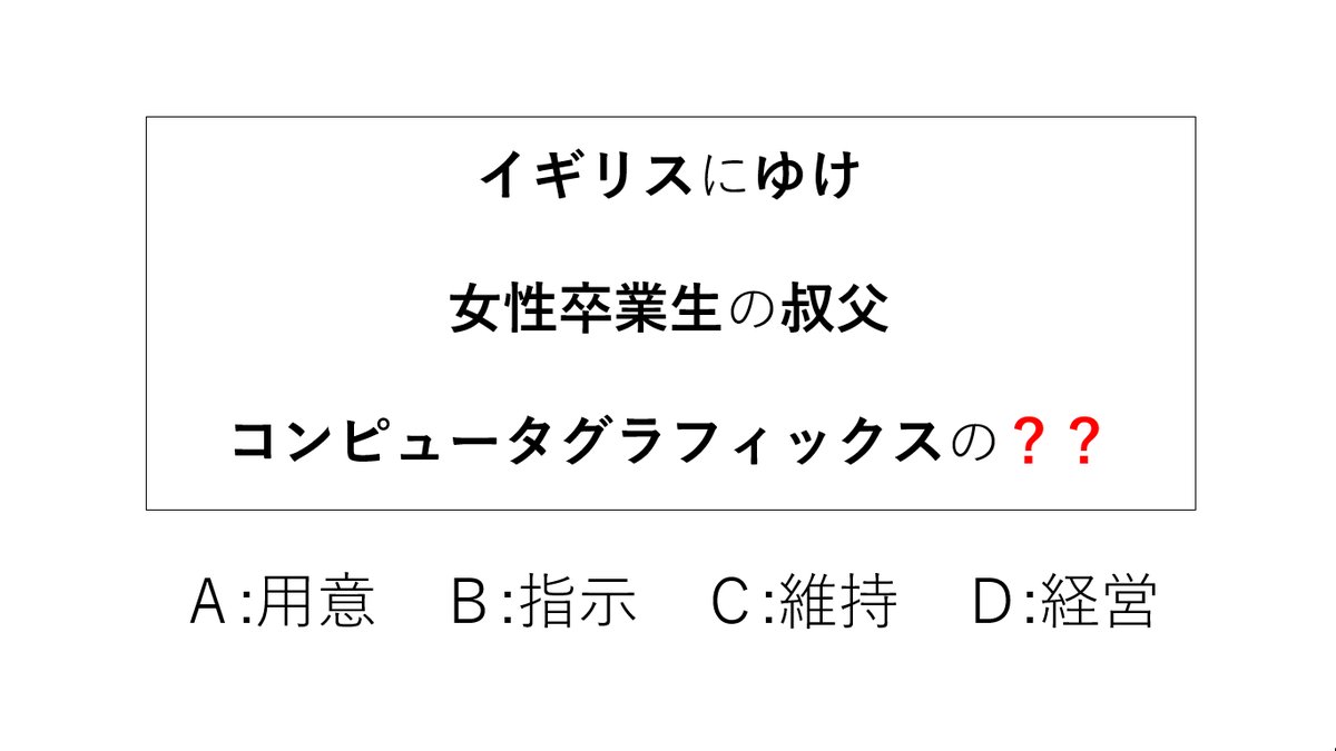??に入る言葉はA~Dのどれでしょう。
