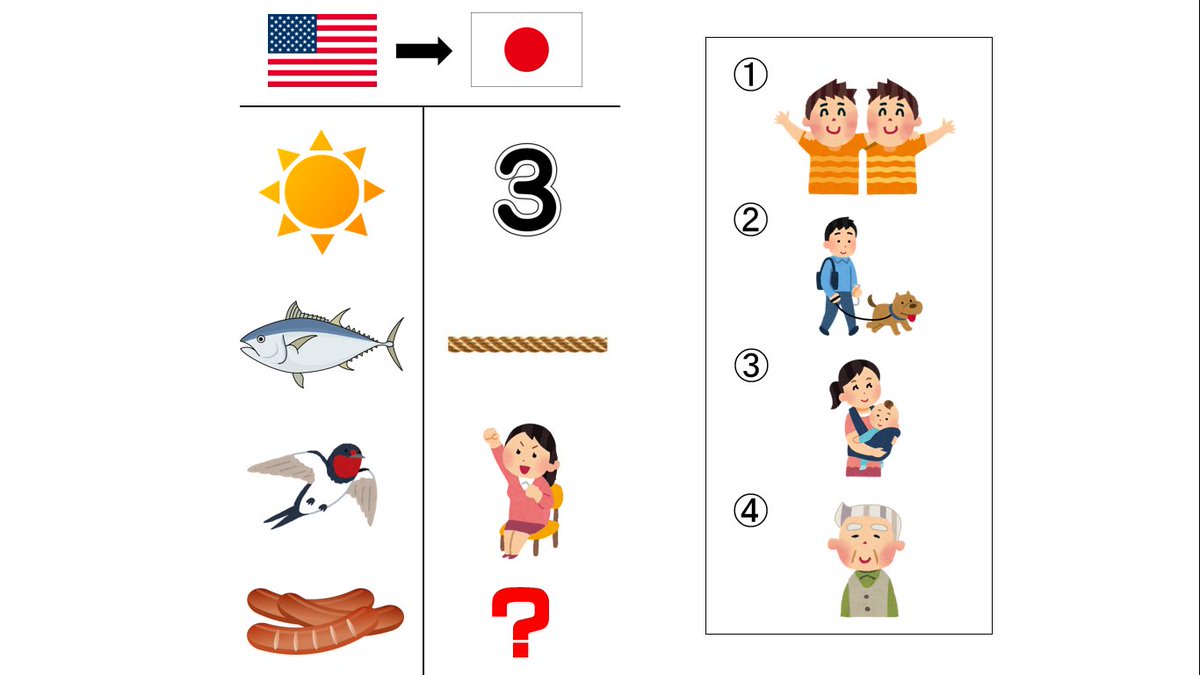 ?に入るイラストは①から④のうちどれでしょう?
