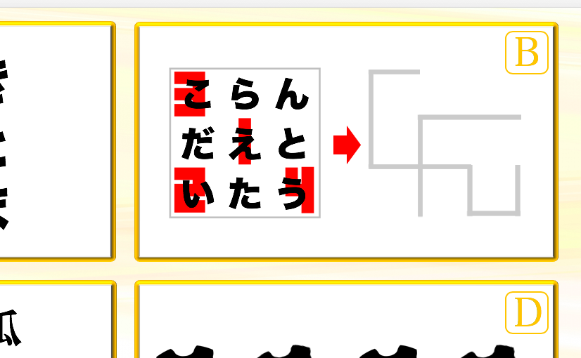 問題Bの黄色4つのカードをパズルのように組み合わせて